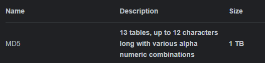 해커들은 공개된 해시 알고리즘으로 어떤 값이 어떤 해시를 출력하는지 테이블을 만들었다.